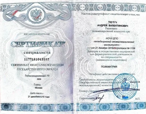 Обратился к Тюрину Андрею Валентиновичу с тяжелым состоянием из-за затяжной депрессии и проблем с алкоголем. Он очень внимательный и профессиональный врач, быстро нашел подходящий для меня метод лечения. Уже через несколько недель почувствовал значительное улучшение. Спасибо за помощь и поддержку на пути к выздоровлению! Скрыть